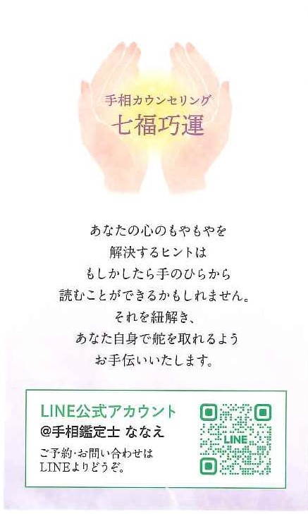 講座・イベント 手相カウンセリング 七福巧運 更新日:2025.08.25 日にち2025年09月01日(月)2025年09月05日(金)2025年09月08日(月)2025年09月12日(金)2025年09月14日(日)2025年09月19日(金)2025年09月22日(月)2025年09月26日(金)2025年09月29日(月) 時間18:30~21:30 場所市民交流広場 参加費有料 内容詳細は主催者様にお問い合わせください