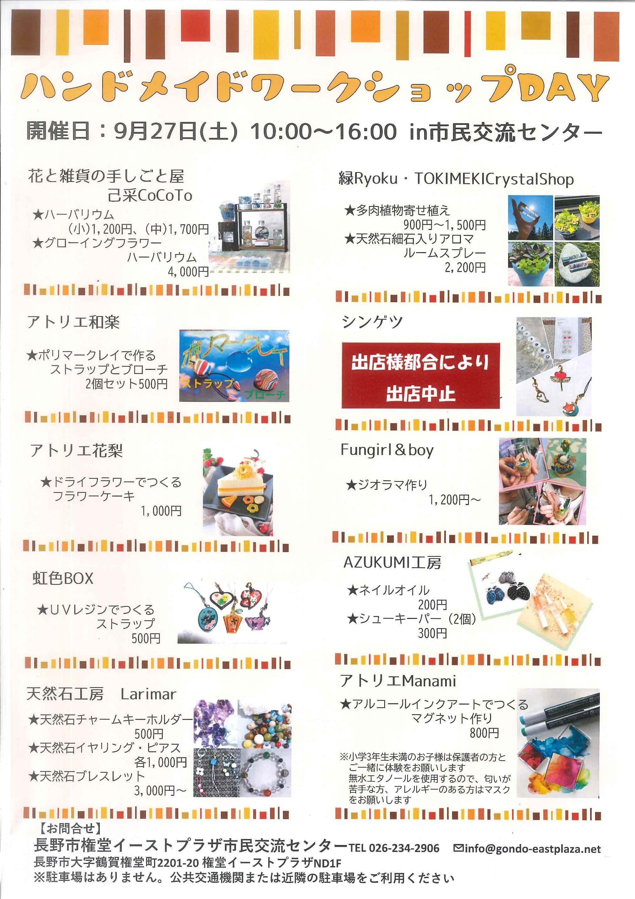 9月27日「ハンドメイドワークショップDAY」を開催しました。