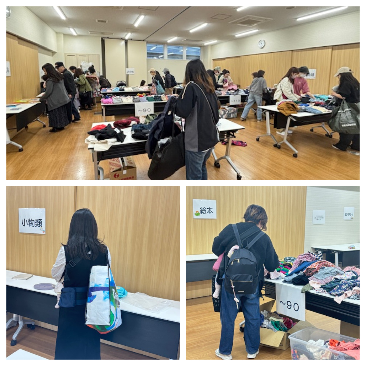 やはり人気なのは絵本やおもちゃのコーナーで、特におもちゃは数に限りがあるため一家庭1点の制限を設けさせていただきましたが、あっという間にコーナーが空っぽになってしまいました。