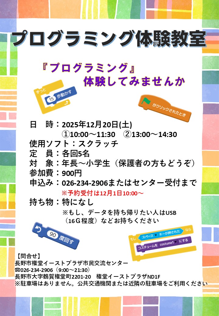 TEL:026-234-2906 または受付まで ※12月1日(月)10:00~受付開始