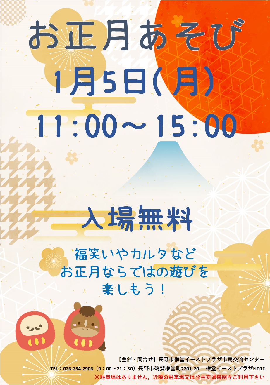 初めて福笑いに挑戦する子やお友だちとカルタで盛り上がる姿、兄弟でコマと遊んだり親子ですごろくを楽しんでいる様子はとても微笑ましい光景で、一年の初めに温かい気持ちにさせていただきました。