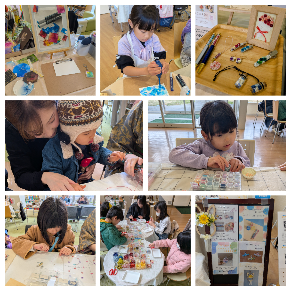 作品が仕上がるのを待っている間に別のワークショップを体験したり、時間の有効活用が出来るのも嬉しいポイントとなっているようでした。難しい作業を親子で一緒に取り組んでいたり、細かい作業を一つ一つ丁寧に集中して取り組んでいるお子さんの姿、お話ししながら楽しそうにしている様子に、スタッフとしてもとても嬉しく思いました。