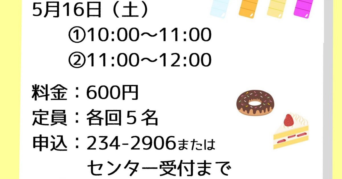 4月25日より受付開始。026-234-2906 または市民交流センター受付まで