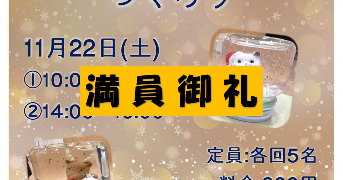 スノードームの中に入れたい人形や小物、グリッターなどがあればお持ち下さい。(サイズや材質によっては入れられない場合もございますので、スタッフまでご確認ください。)