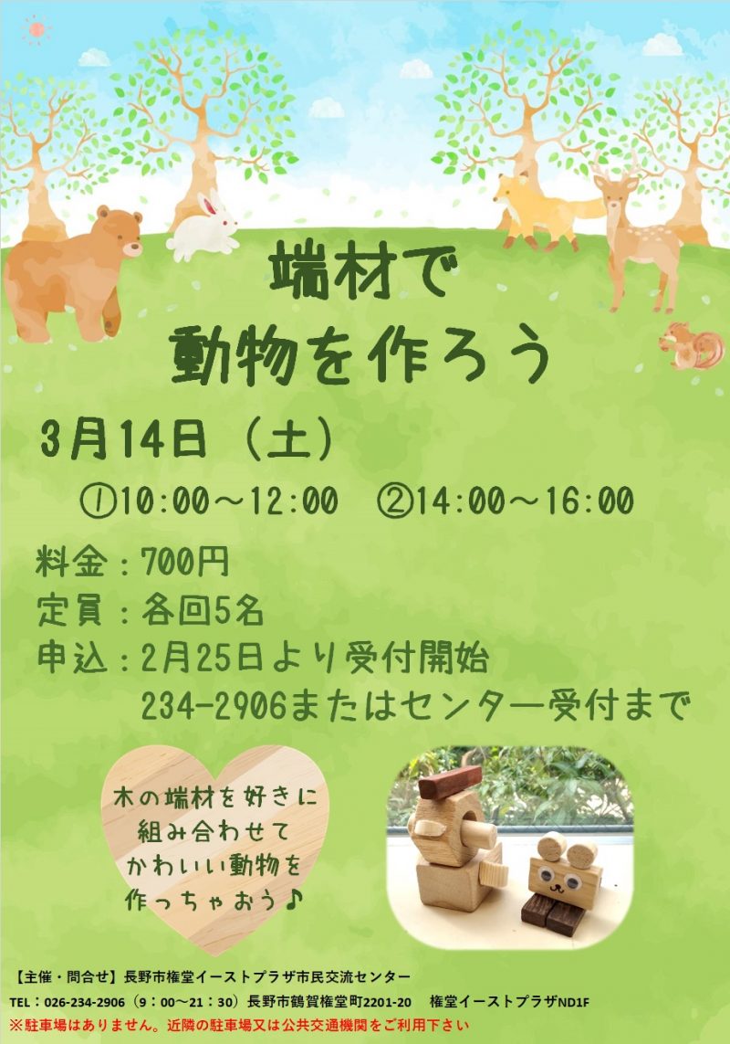 木の端材を好きに組み合わせて動物の置物を作ります。